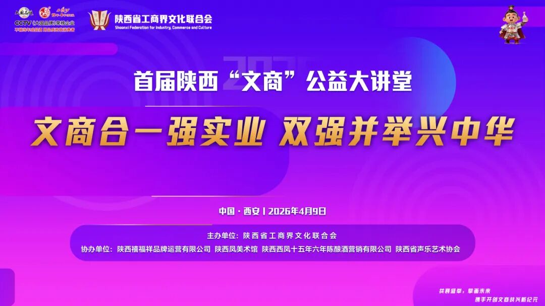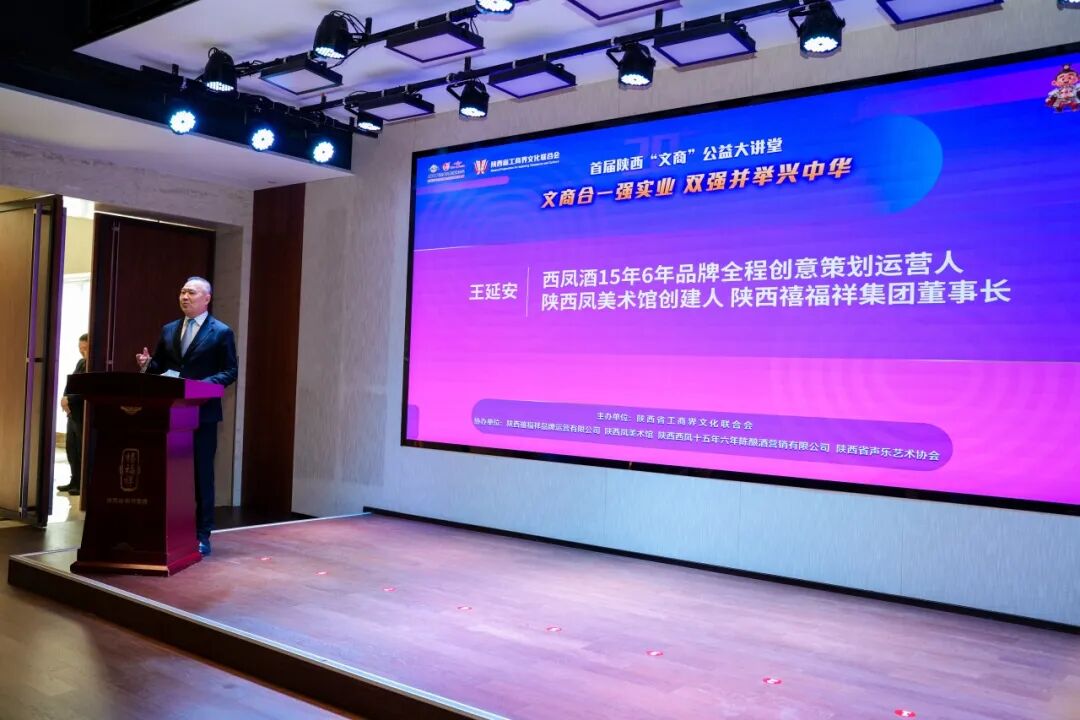 春满三秦,文商共兴。4月9日,首届陕西“文商”公益大讲堂在陕西禧福祥美术馆隆重举行。本次活动由陕西省工商界文化联合会主办,陕西禧福祥品牌运营有限公司、陕西凤美术馆、陕西西凤十五年六年陈酿酒营销有限公司、陕西省声乐艺术协会协办,旨在搭建文商深度融合的交流平台,助力陕西本土企业厚植文化根基、把握时代机遇、实现高质量发展。