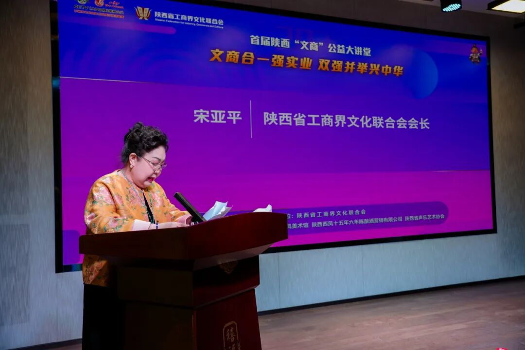 陕西省工商界文化联合会会长宋亚平深入阐释了活动的初衷,发出倡议,号召陕西工商界携手并肩,推动文商深度融合,以实际行动助力民族复兴,践行“挖掘文化富矿、激活商业活力”的发展理念。
