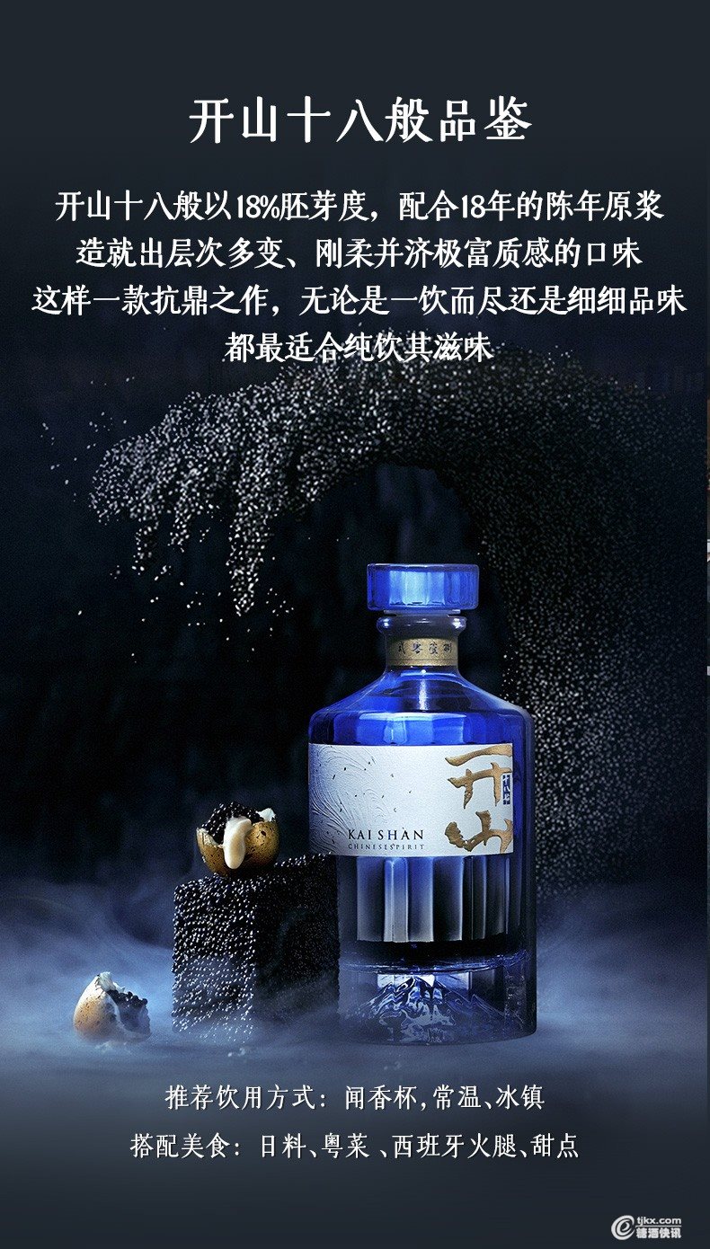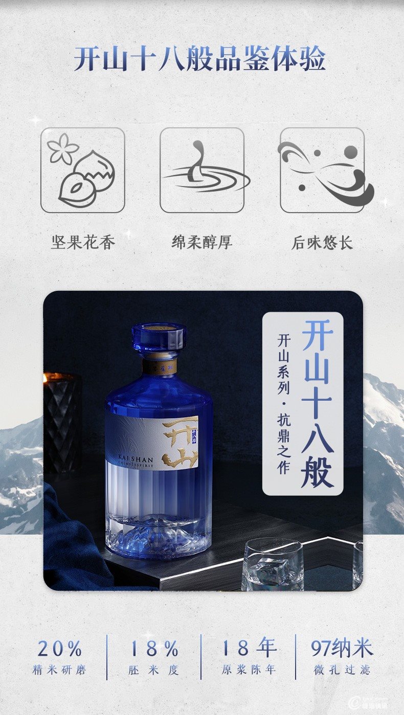 开山系列,扛鼎之作,胚米度18%,原浆陈年18年;