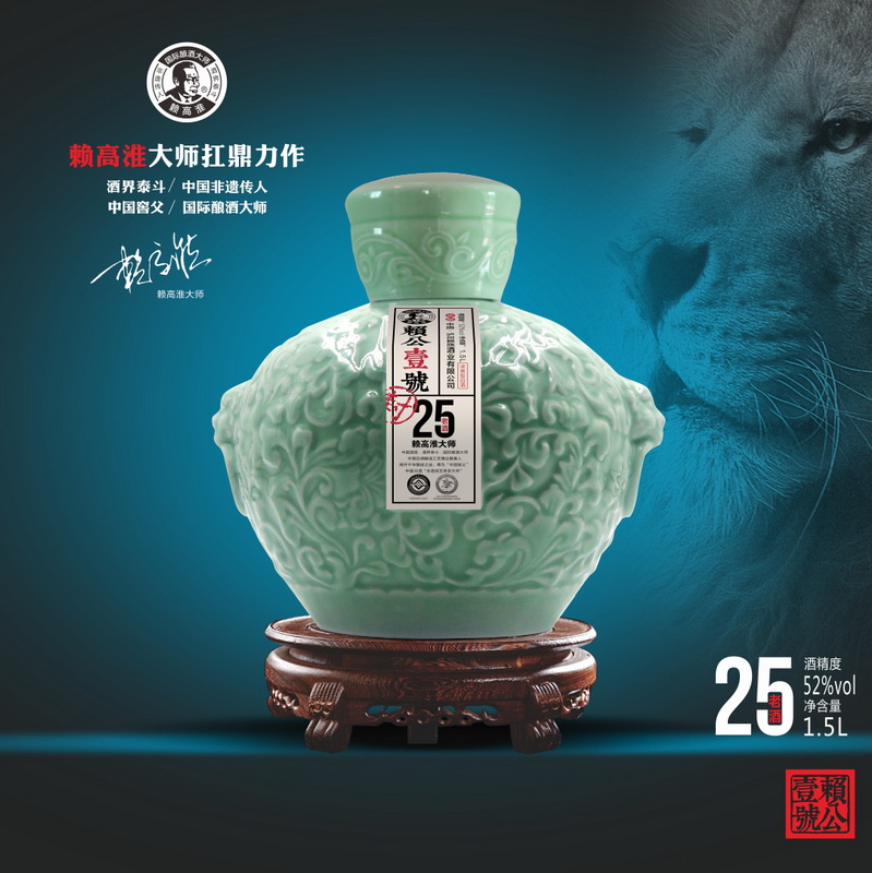 双狮呈祥尊崇礼尚,双狮起舞、花伴云彩、神采飘逸、融汇贯通。让历史的脉络更加清晰可见。赖公亲酿,尽显壹号的不凡酒质。酒体选用赖公封藏于上世纪的老酒调制而成。大师匠心,成就美酒。