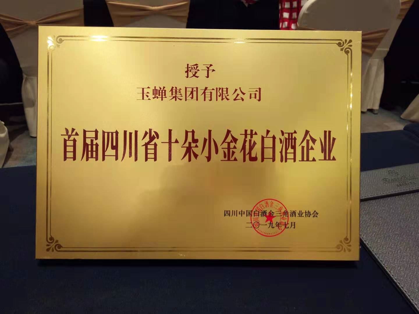 7月12日,由四川中国白酒金三角酒业协会主办,宜宾五粮液集团有限公司承办的2019年四川白酒行业年会暨“首届四川省十朵小金花白酒企业”授牌仪式在宜宾恒旭国际大酒店举行,董事长钟其成出席会议,玉蝉集团有限公司荣获“首届四川省十朵小金花白酒企业”。