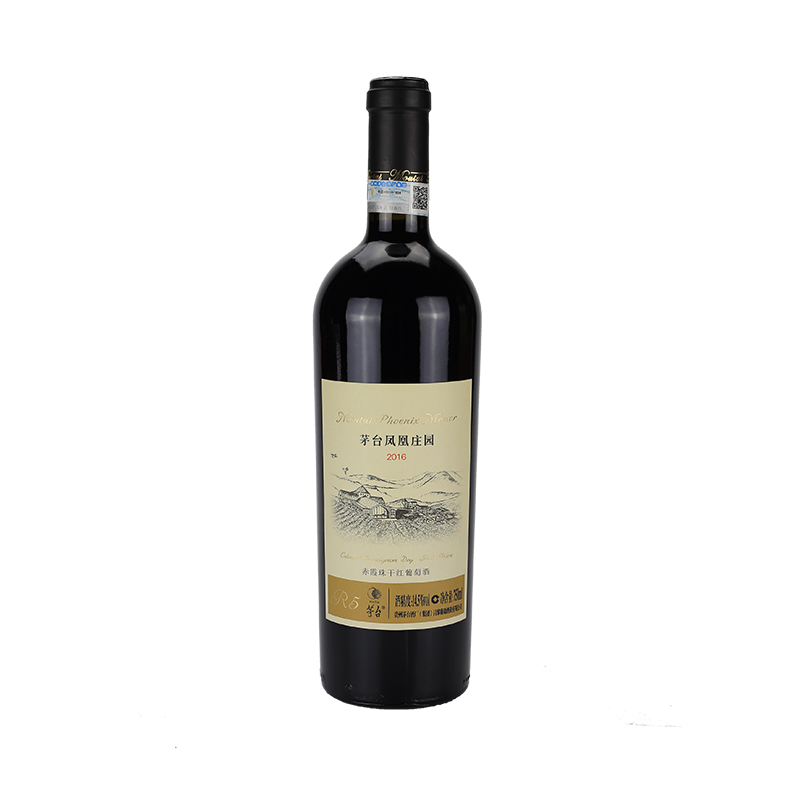 茅台赤霞珠干红葡萄酒(庄园R5),以茅台优选基地赤霞珠为原料,葡萄老树,采用传统工艺,经法国优质橡木桶陈酿18个月,酒体呈深宝石红色,具有浓郁的覆盆子、紫罗兰花香和精致的干果香,入口圆润,单宁细腻,酒体饱满醇厚,余味悠长